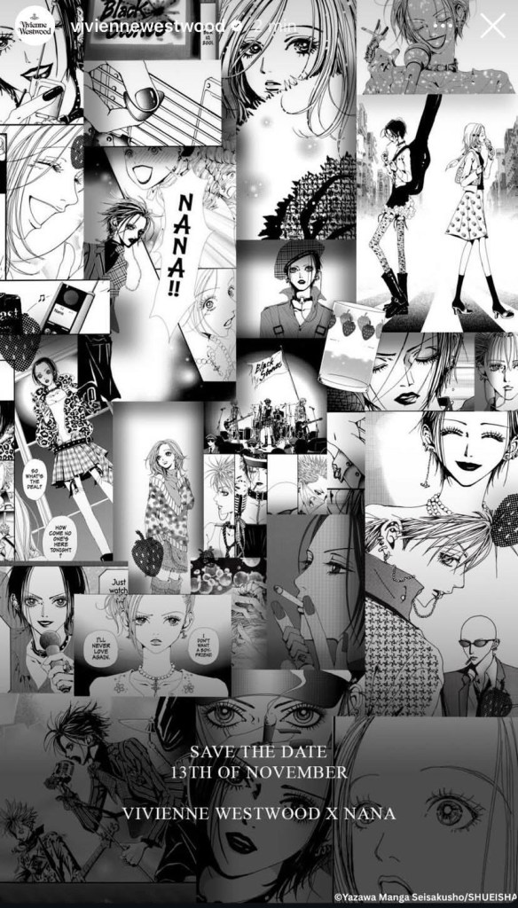 I think the NANA collection absolutely reflects Ai Yazawa’s work, especially if you understand the duality of the characters and you actually know the pieces already in Westwood’s collection. A lot of the discourse online surrounding the drop was that the pieces were just ‘rebranded VW classics,’ but isn’t that the point? The accessories and fashion showcased in both the NANA anime and manga were real Vivienne Westwood pieces that already existed and are still purchasable today, so it’s completely intentional that the collab carried a lot of the classic designs. That’s part of the show’s identity and the characters’ identity too.